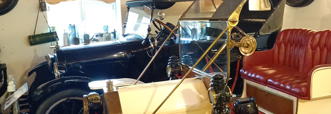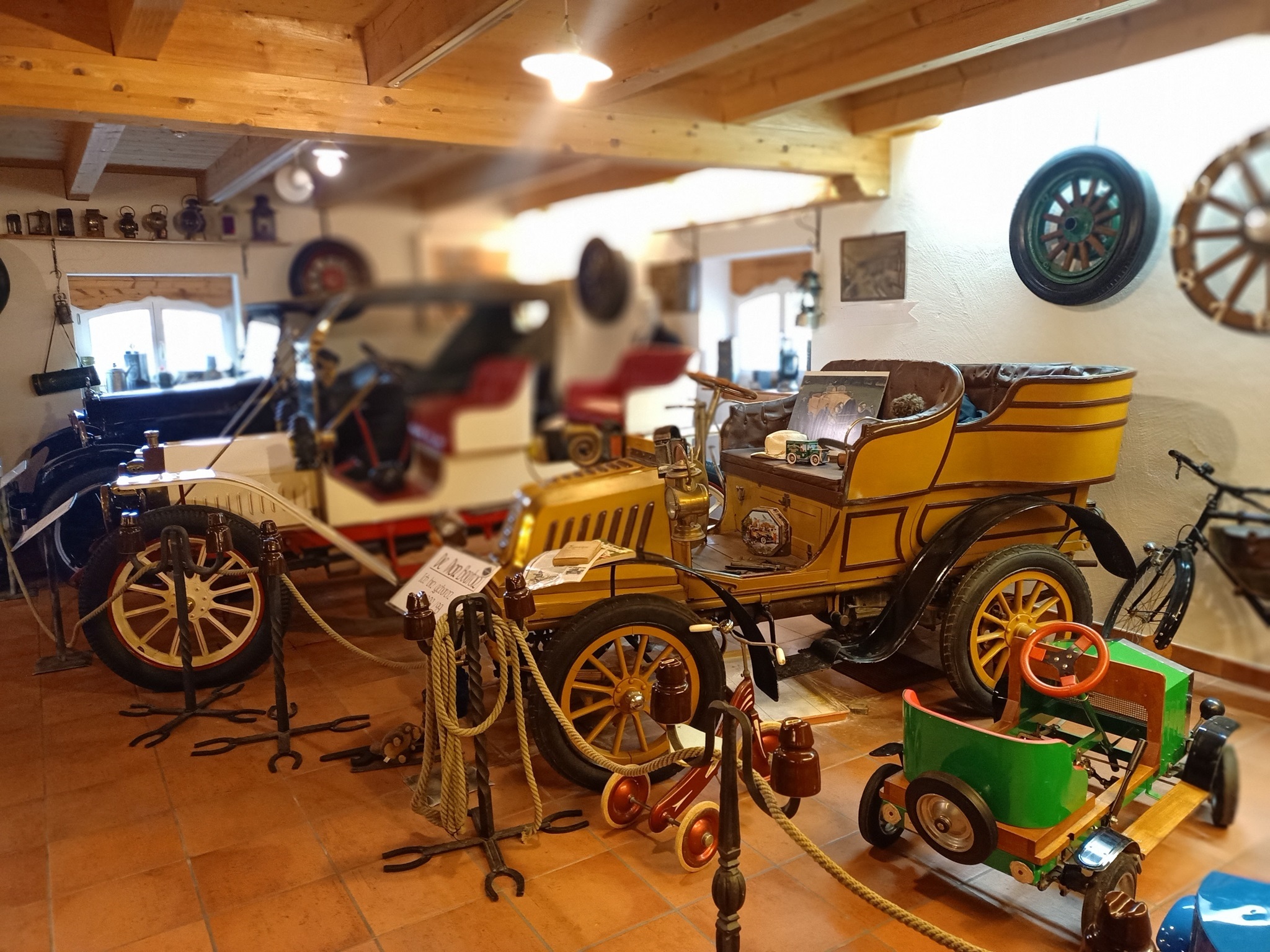 Weitere Ausstellungsobjekte sind drei Oldtimer vom Jahrgang 1899 – 1924, alle in fahrbarem Zustand, und noch ca. 100 Modell-Oldtimer (Grösse ca. 15 – 20 cm).