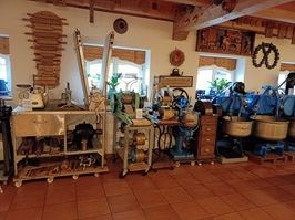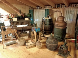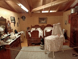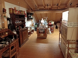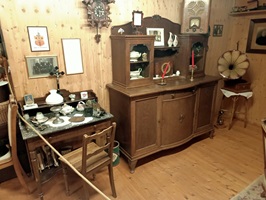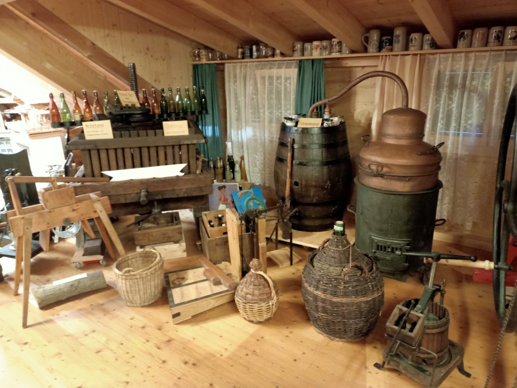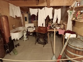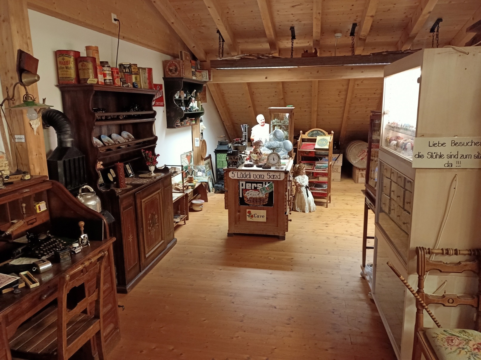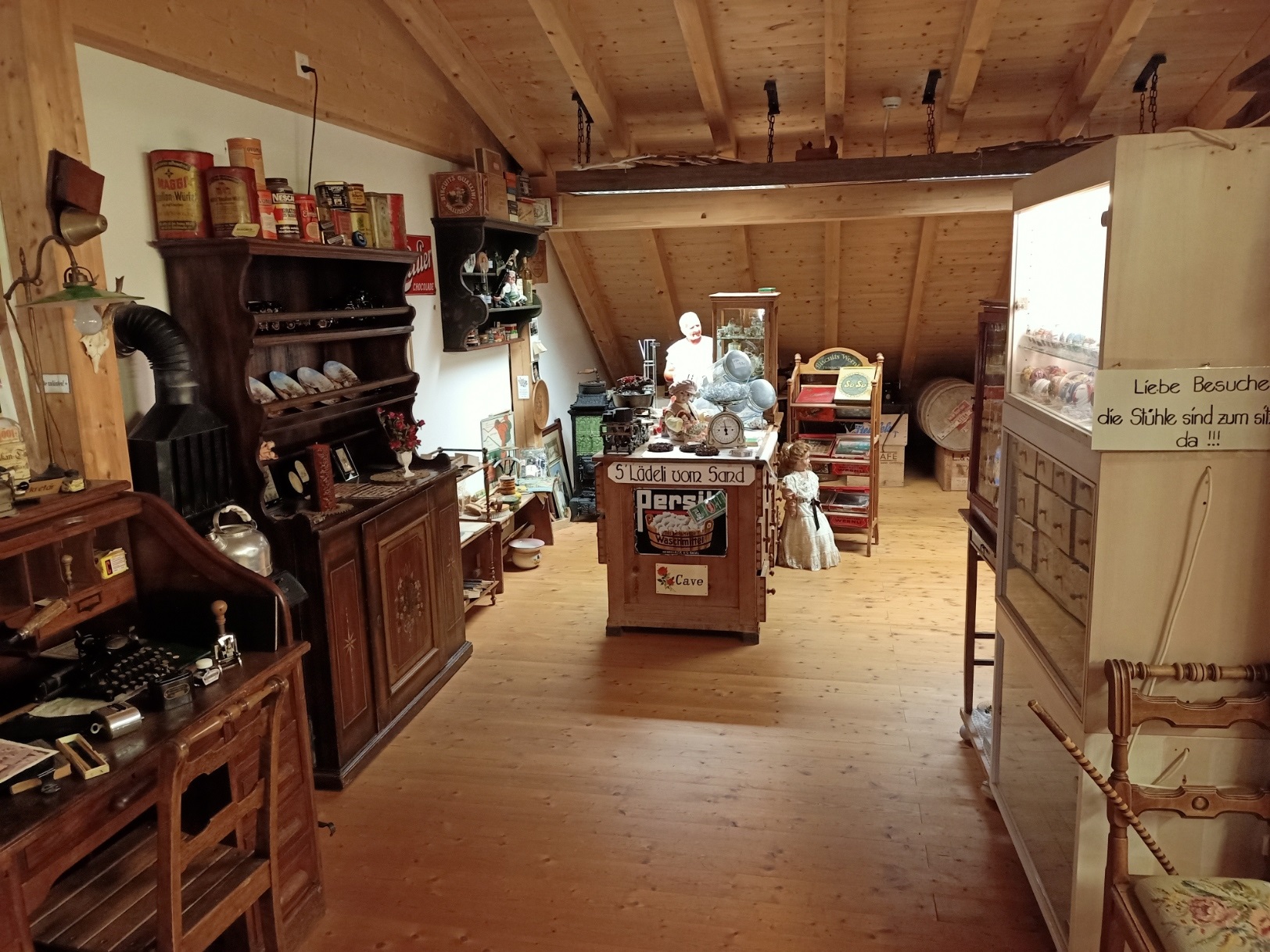 Im Oberen Stock ist eine Ausstellung, wie anno dazumal in unserer Region „gehaust“ wurde, beispielsweise: altes Schlafzimmer, alte Stube, alte Küche, eine alte Waschküche, altes WC.