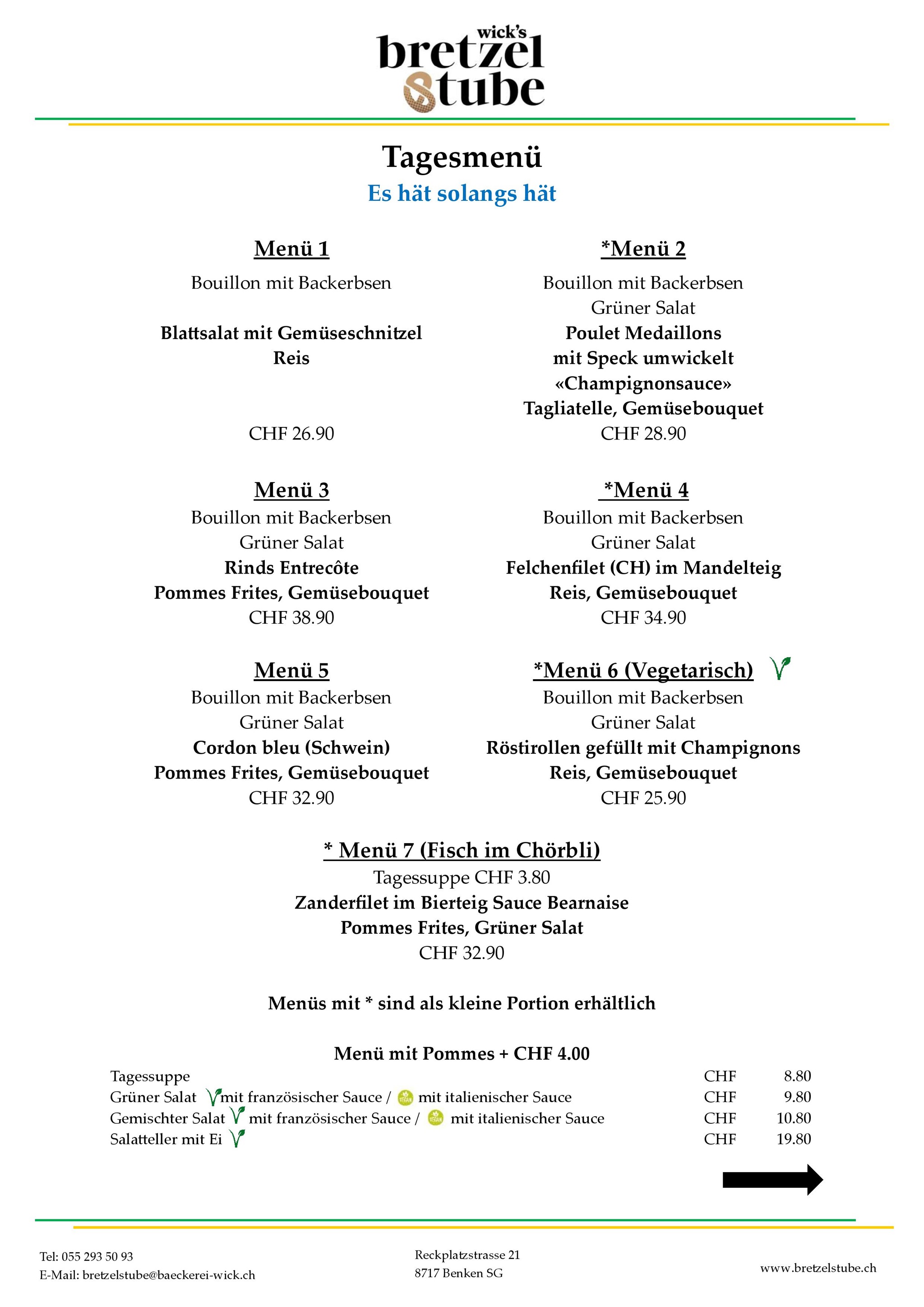 Tagesmenü's Samstag 18.04.2026