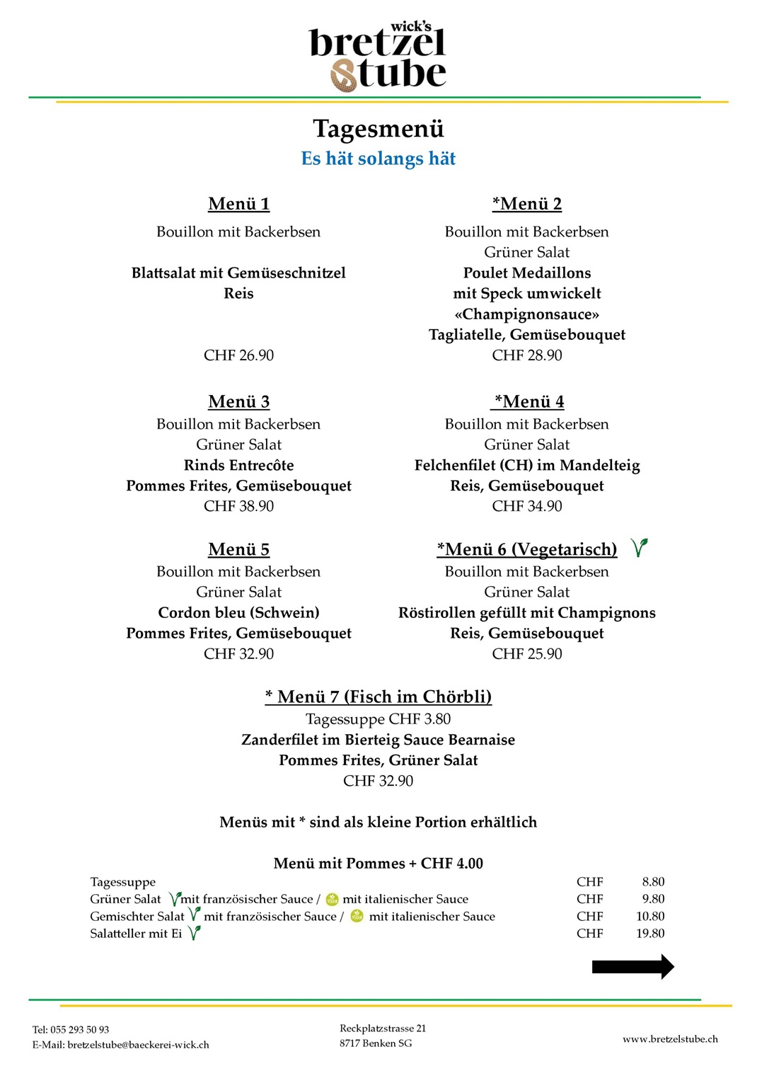 Reservierungen: 055 / 293 50 93· bretzelstube@baeckerei-wick.ch